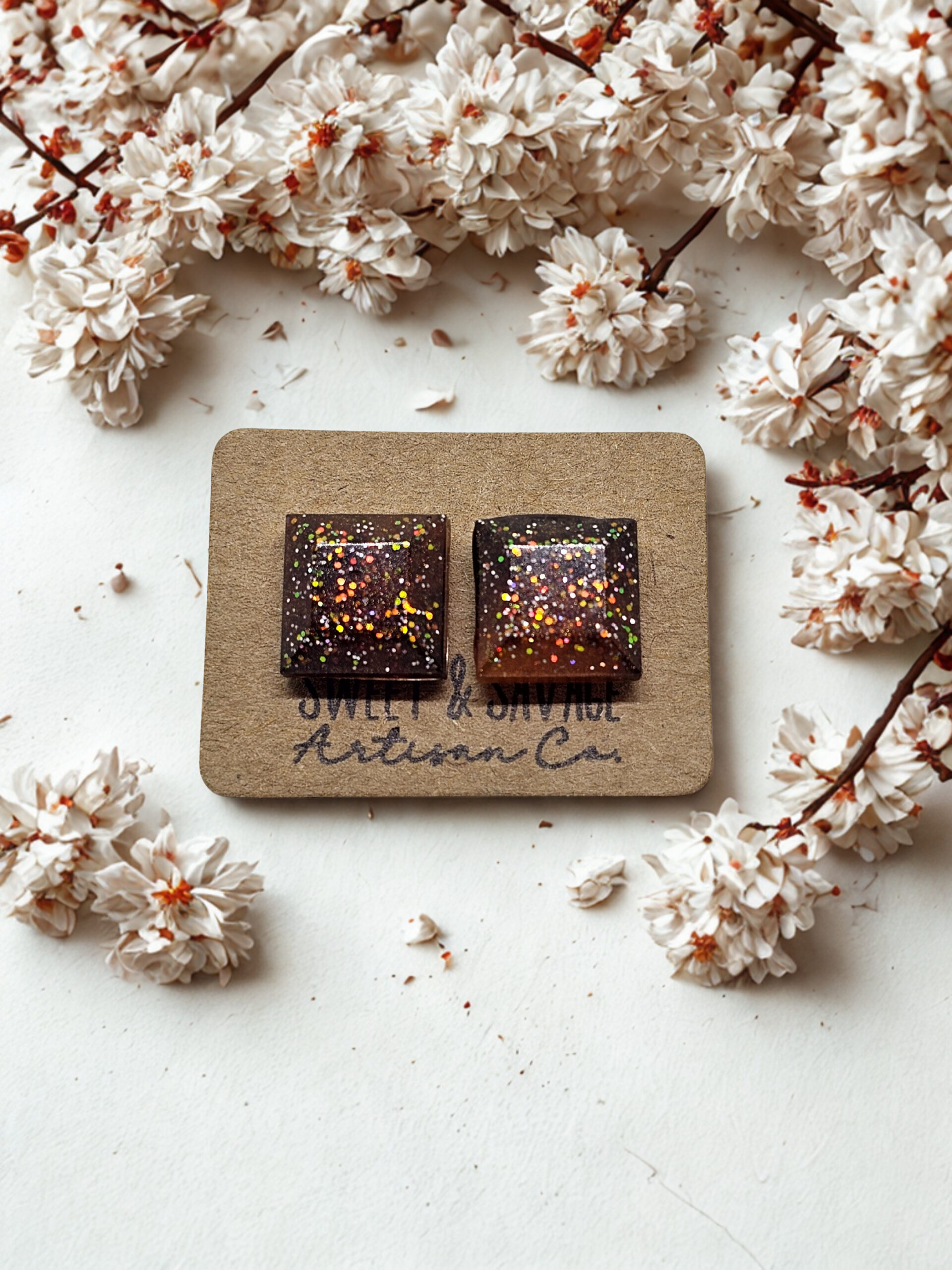 Lightweight and eye-catching, these handmade resin earrings offer everyday elegance with a modern twist.