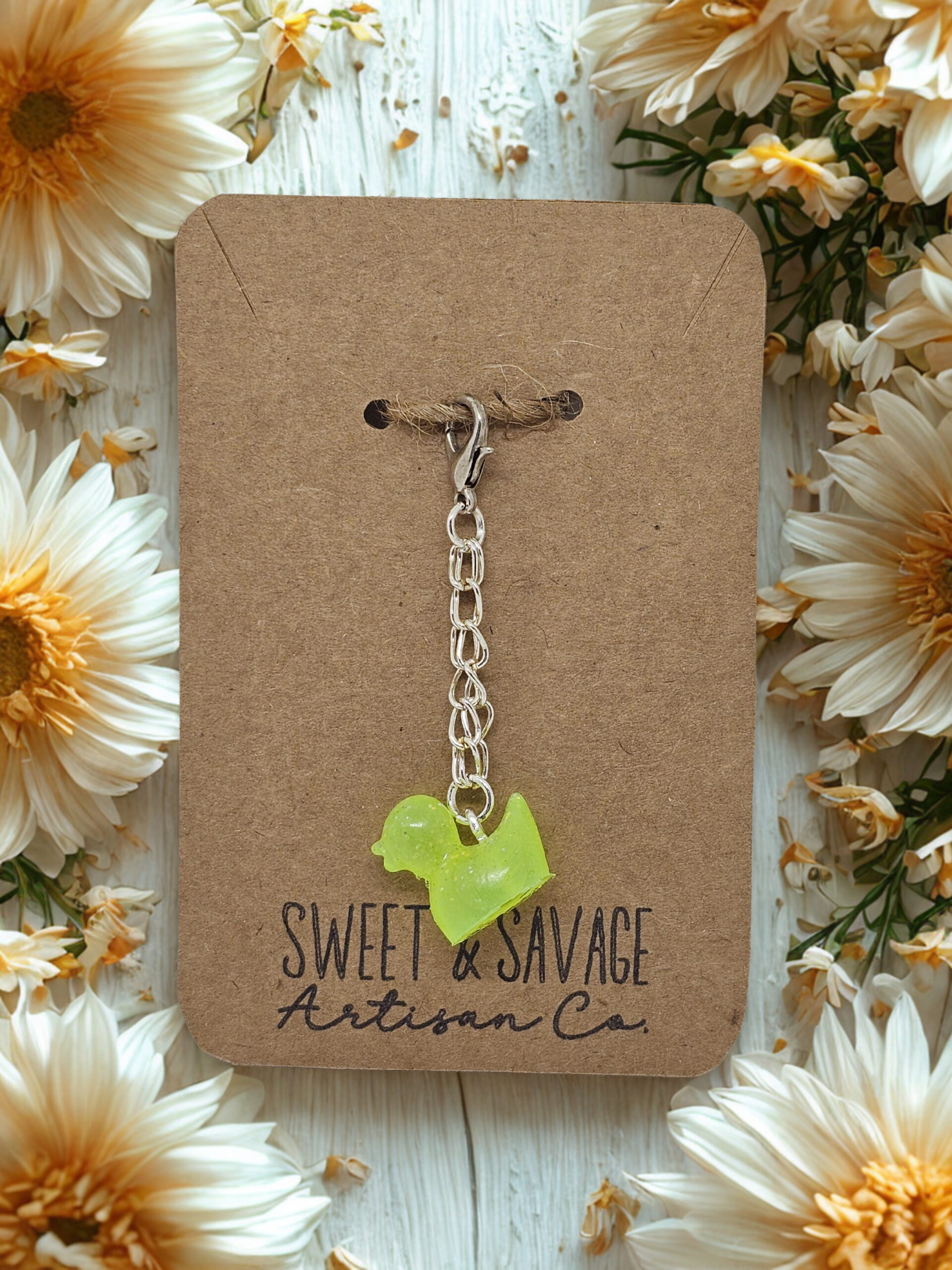 Add a little glow and a lot of personality to your everyday items with our Glow-in-the-Dark Duck Charm! This fun, handmade charm features a bright neon yellow duck that glows in the dark, making it both playful and practical. Perfect for adding flair to your accessories while keeping things easy to spot at night.