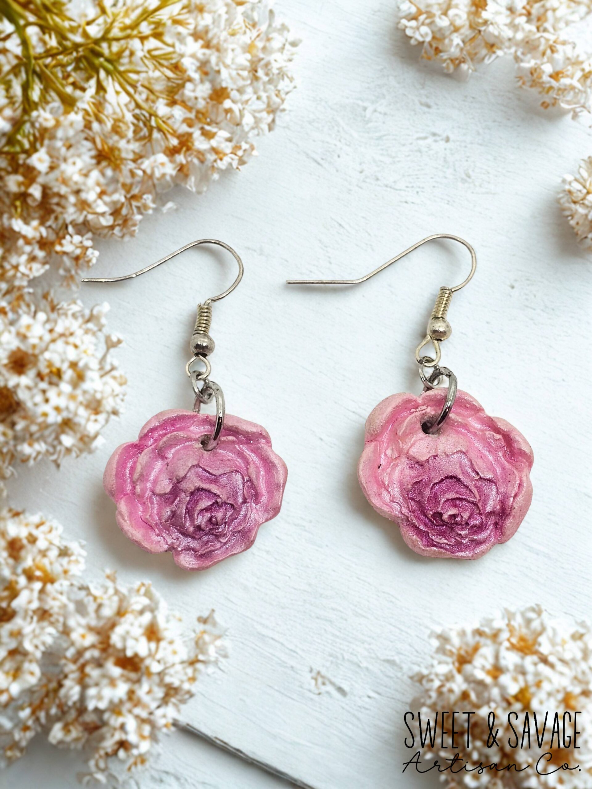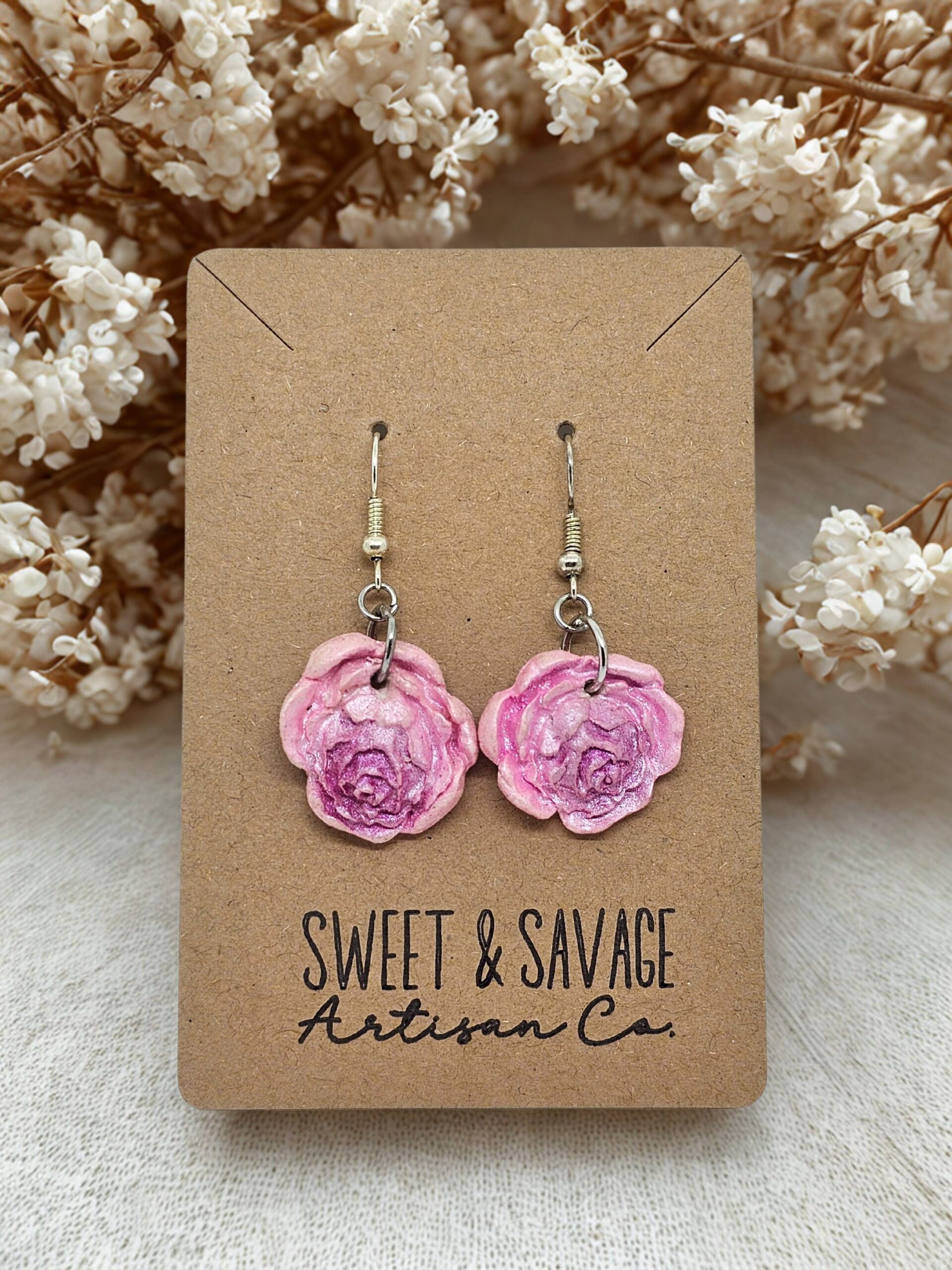 Pink Rose Dangle Earrings