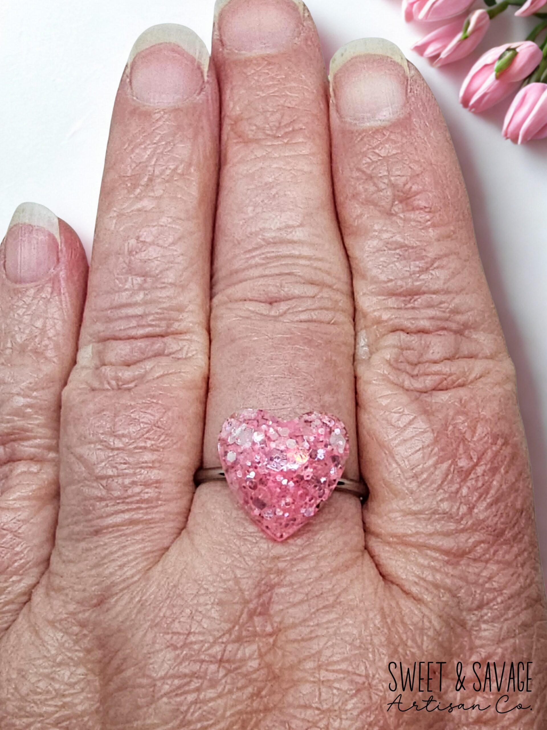 • One pink sparkle adjustable ring