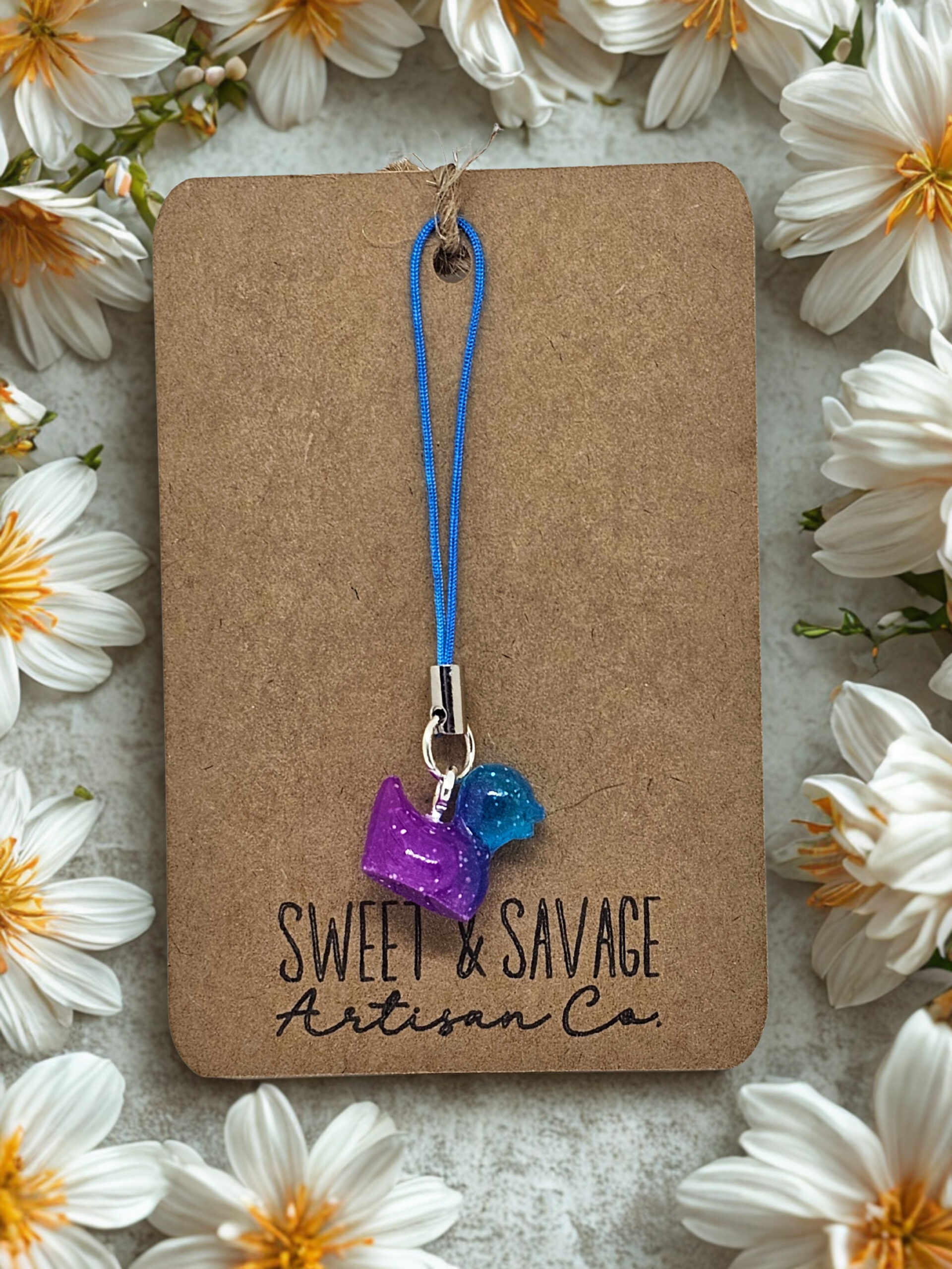 Purple & Blue Glow-in-the-Dark Duck Charm Keychain