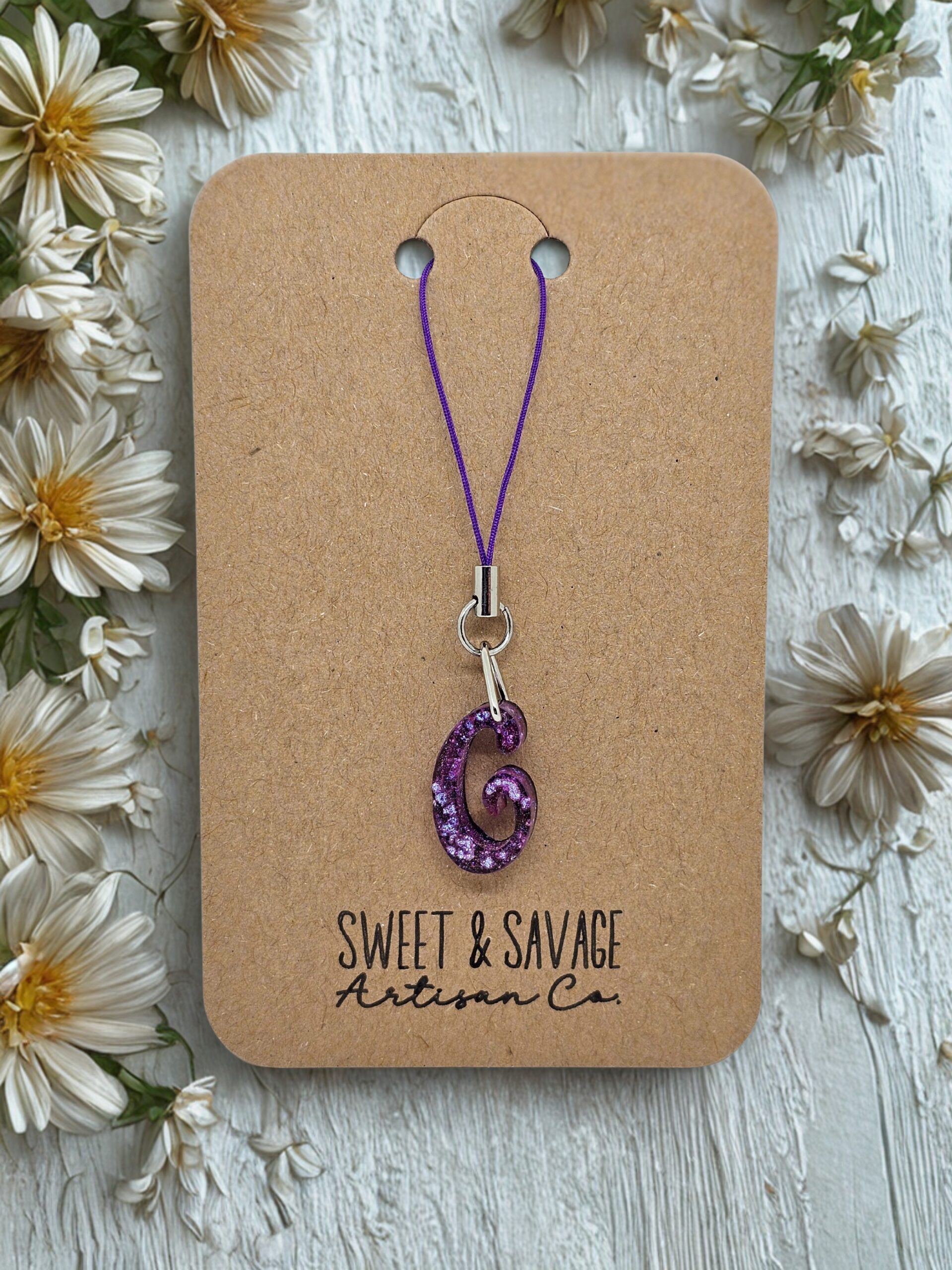 Purple Letter C Initial Charm for Phone, Purse, Zipper, Back Pack, Key Ring