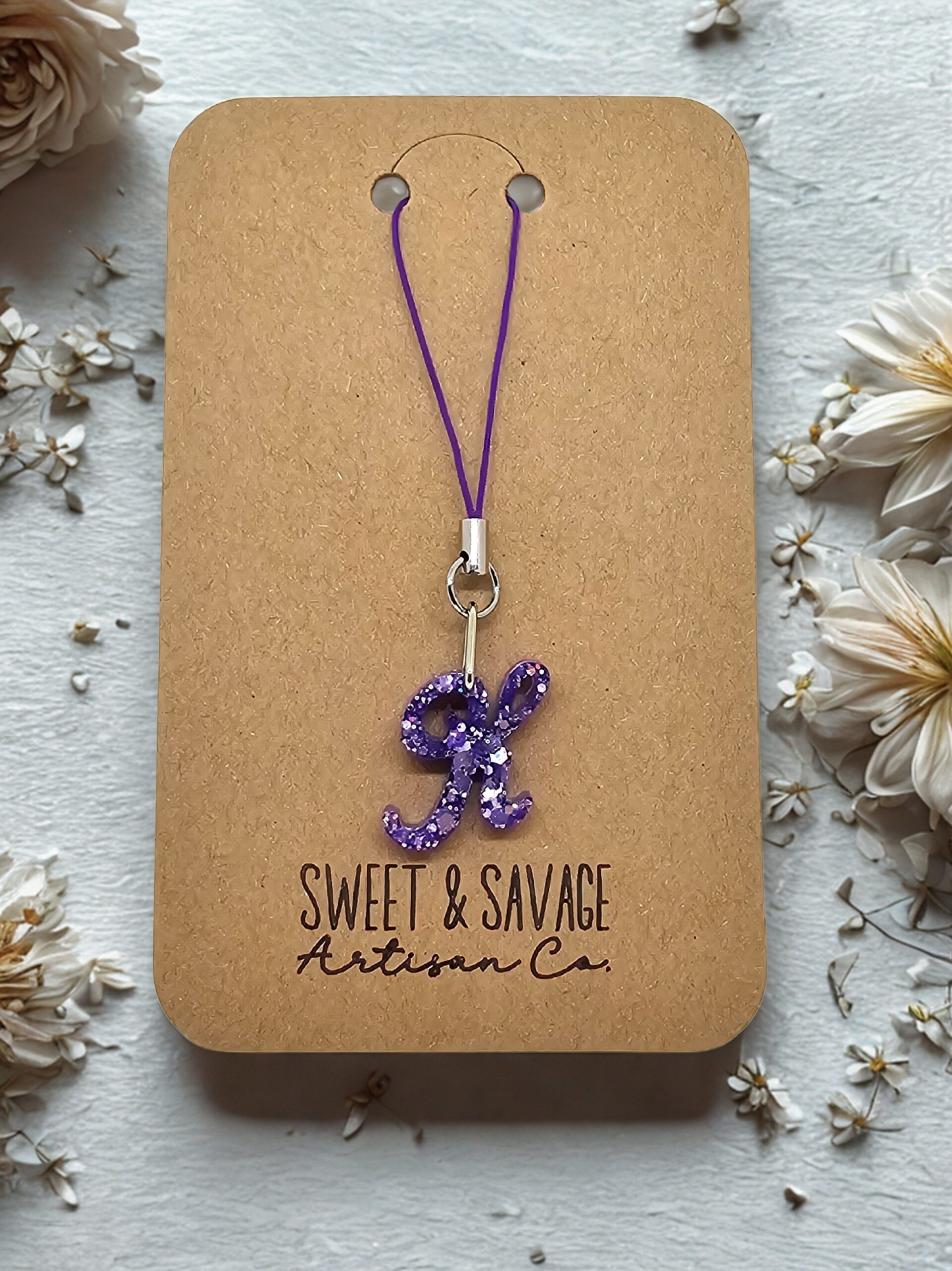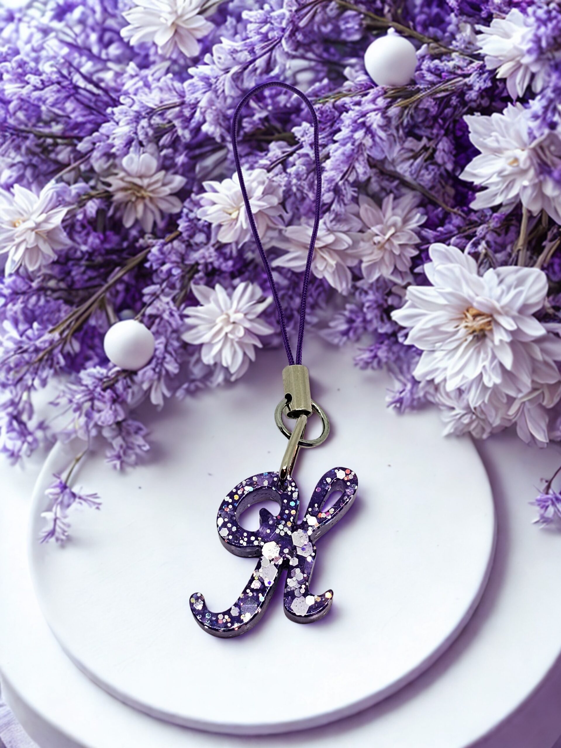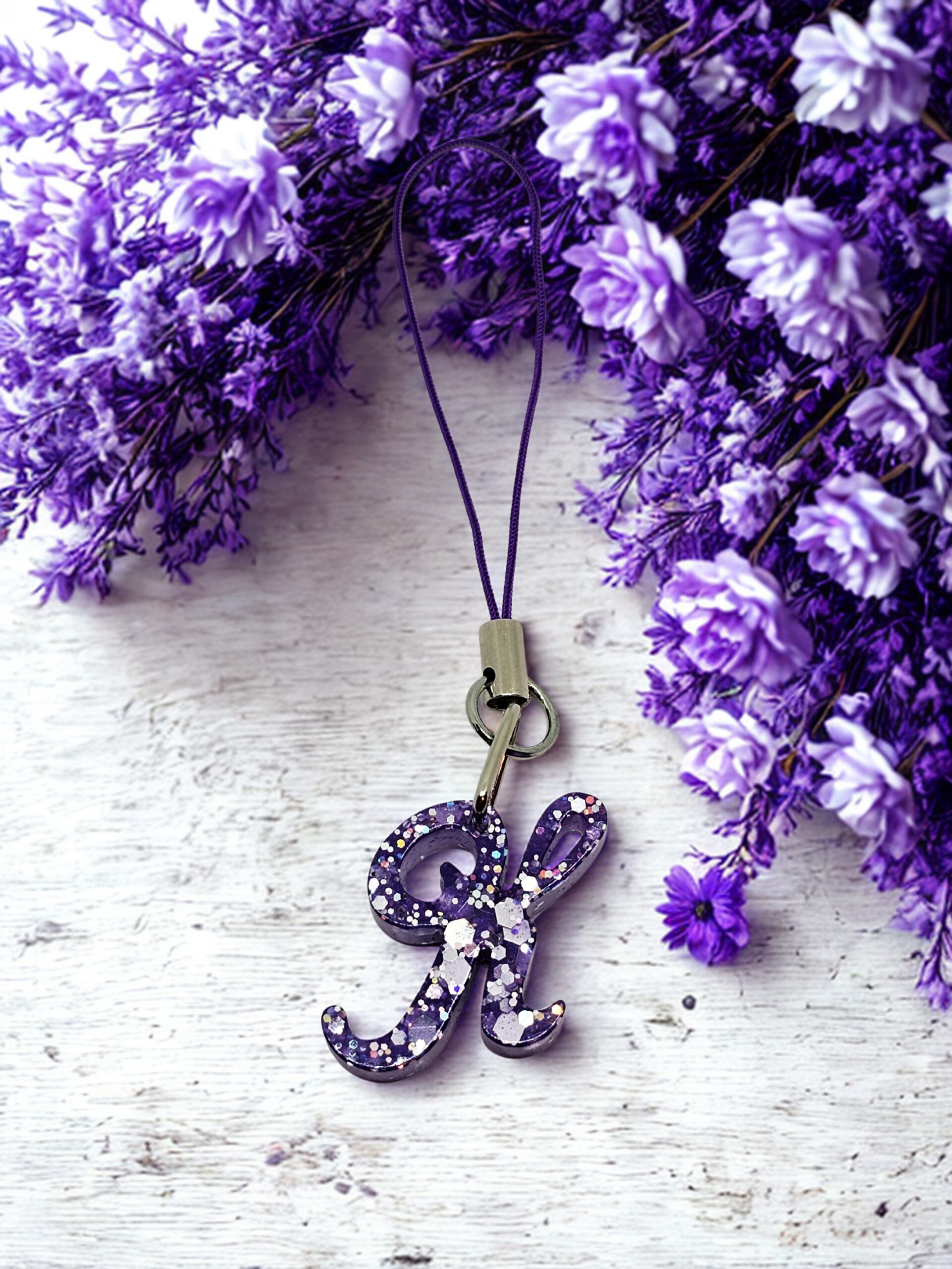 • Handmade purple resin initial charm